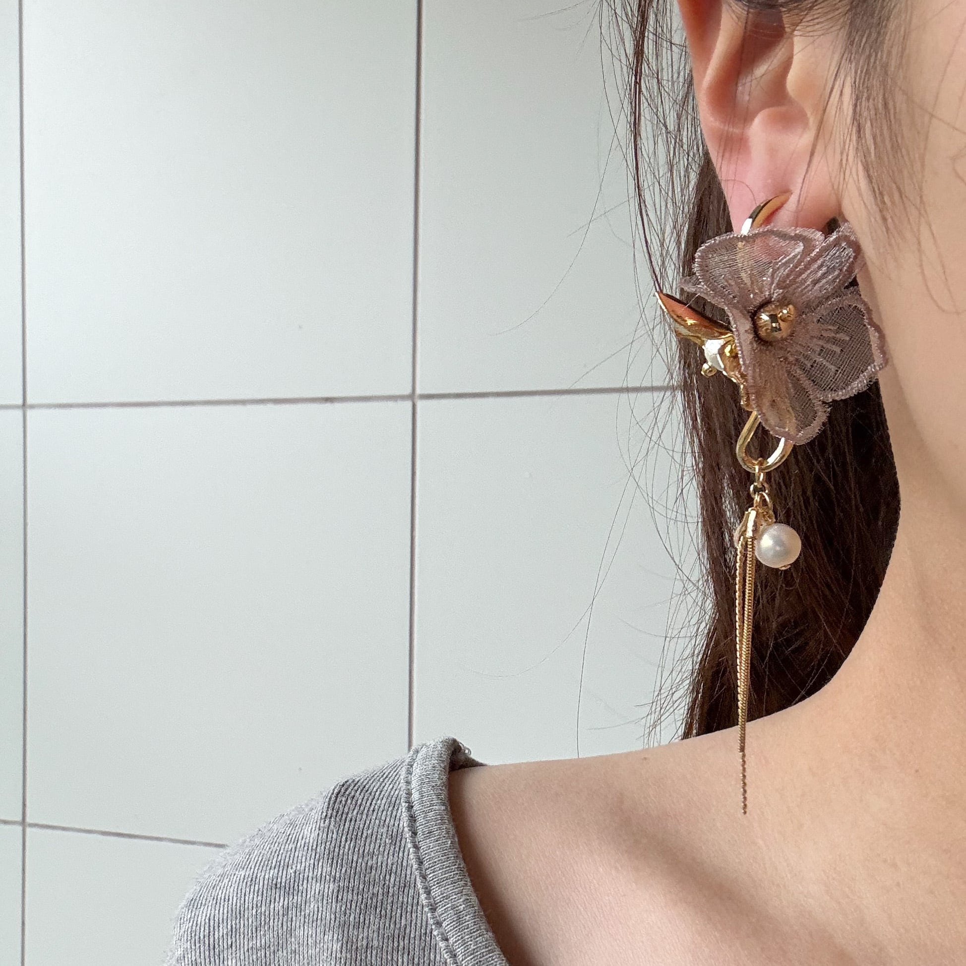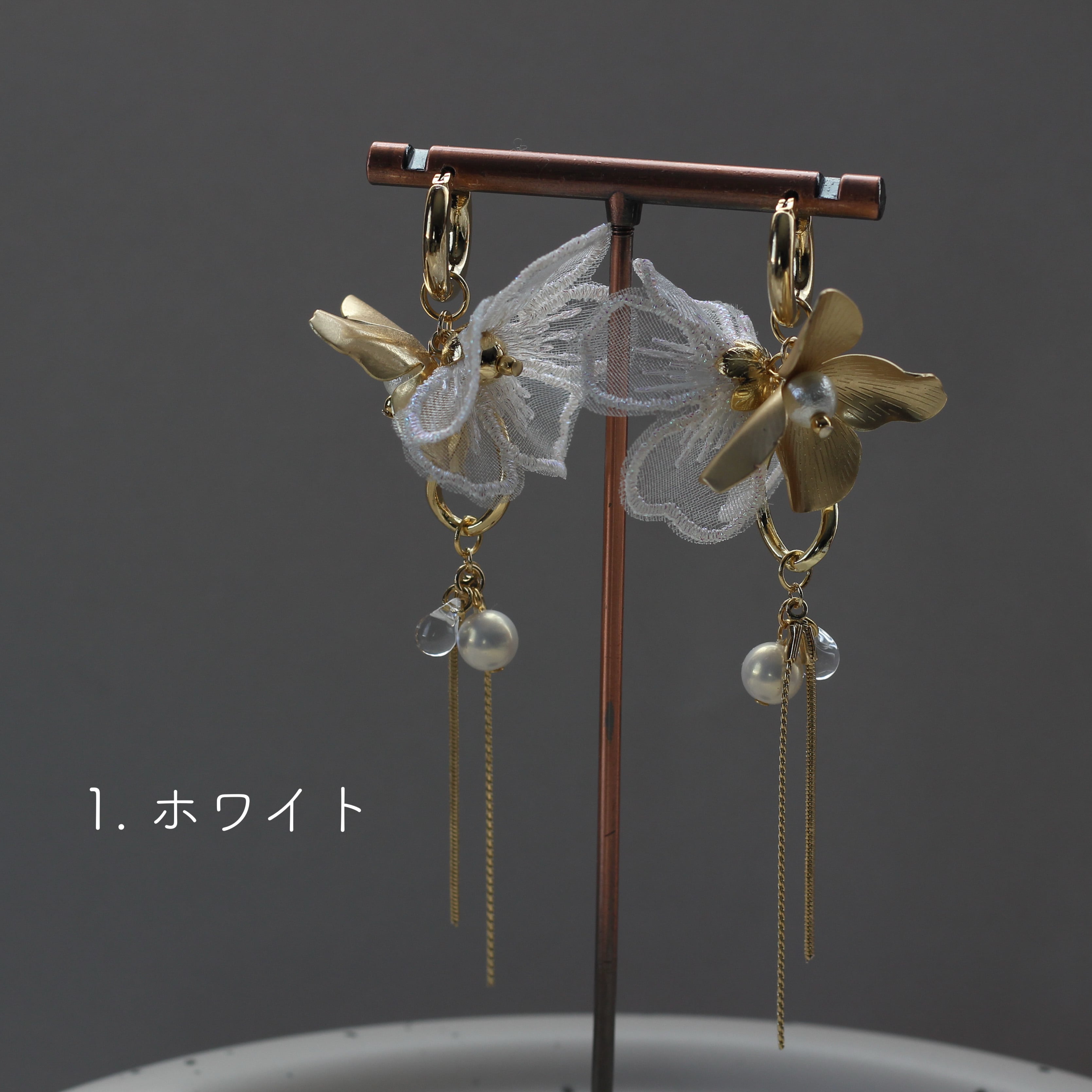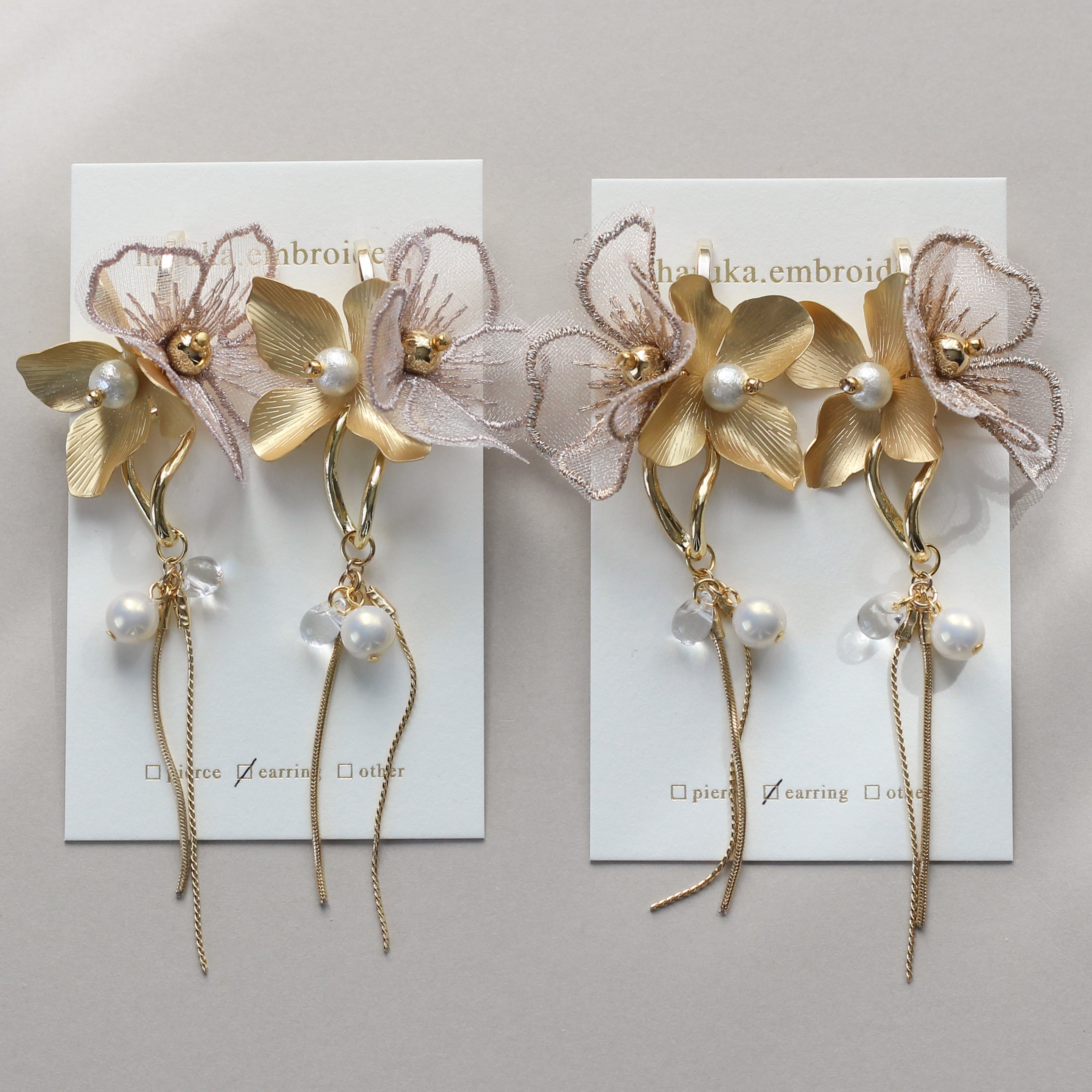おおぶりのお花パーツを使用したピアス/イヤリングです。
