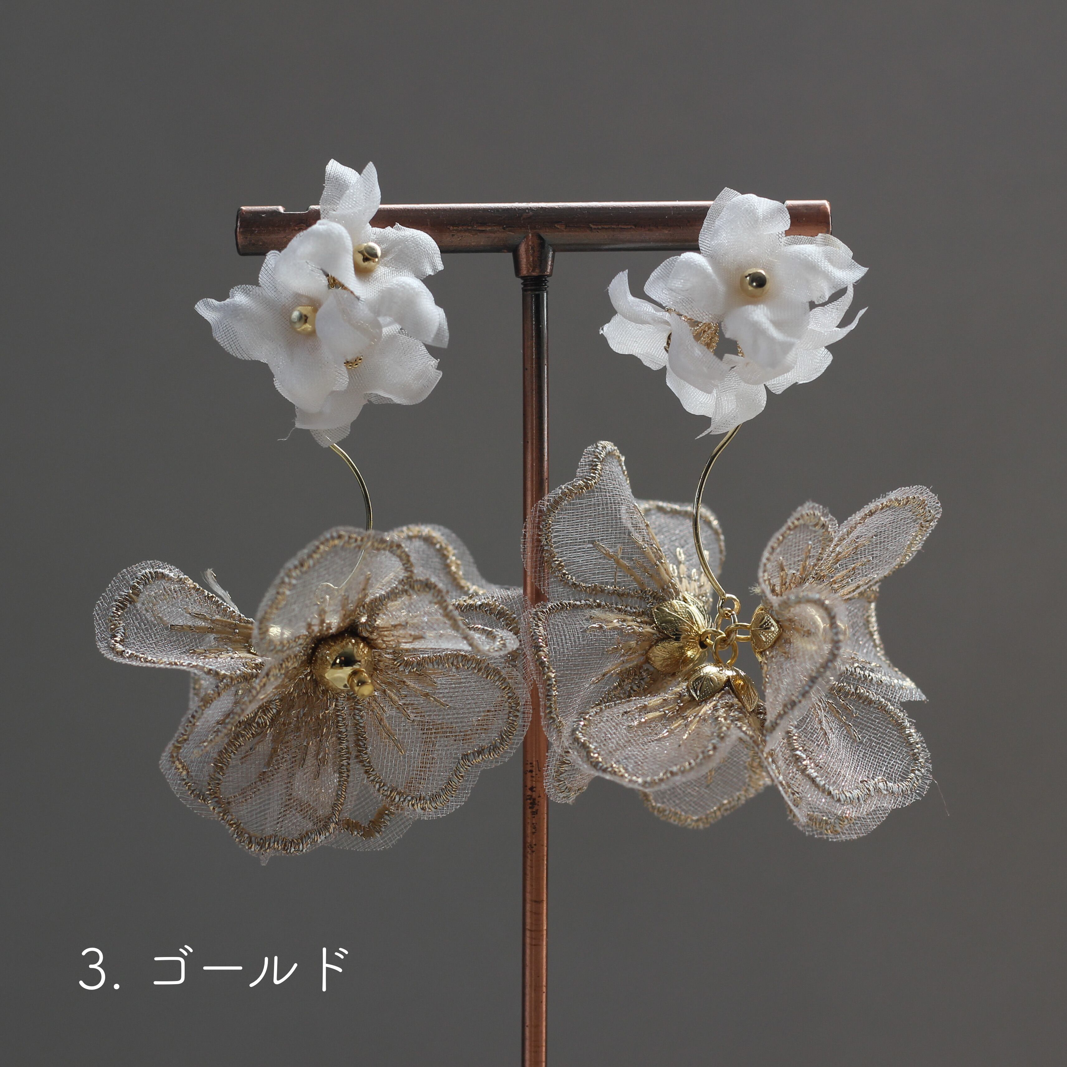 おおぶりのお花パーツを使用したピアス/イヤリングです。